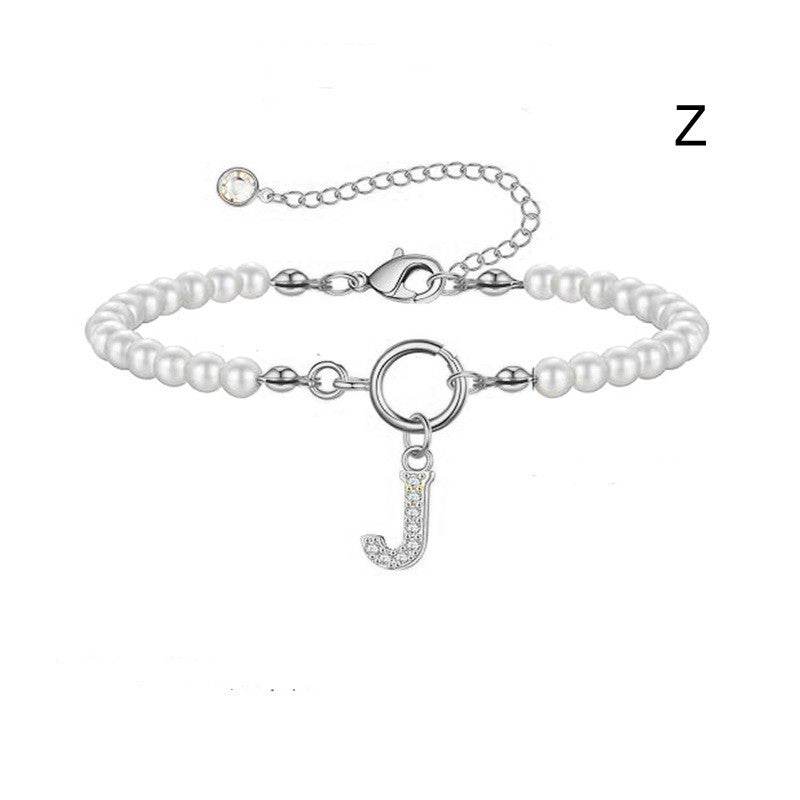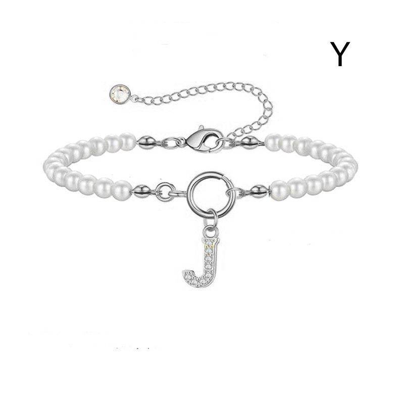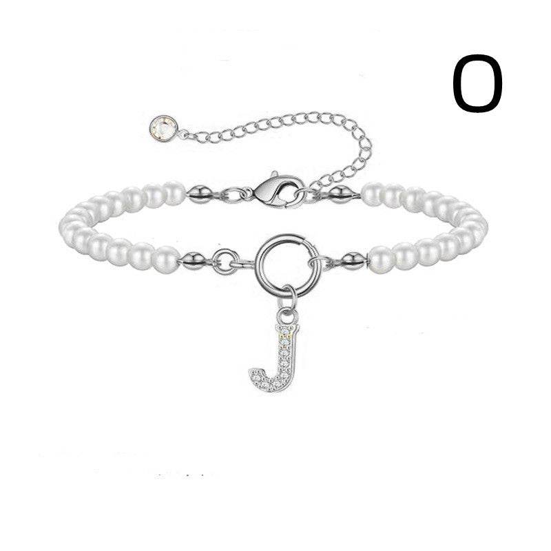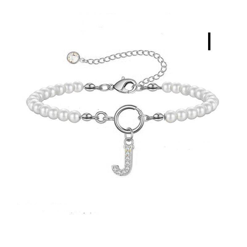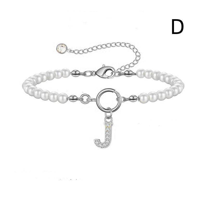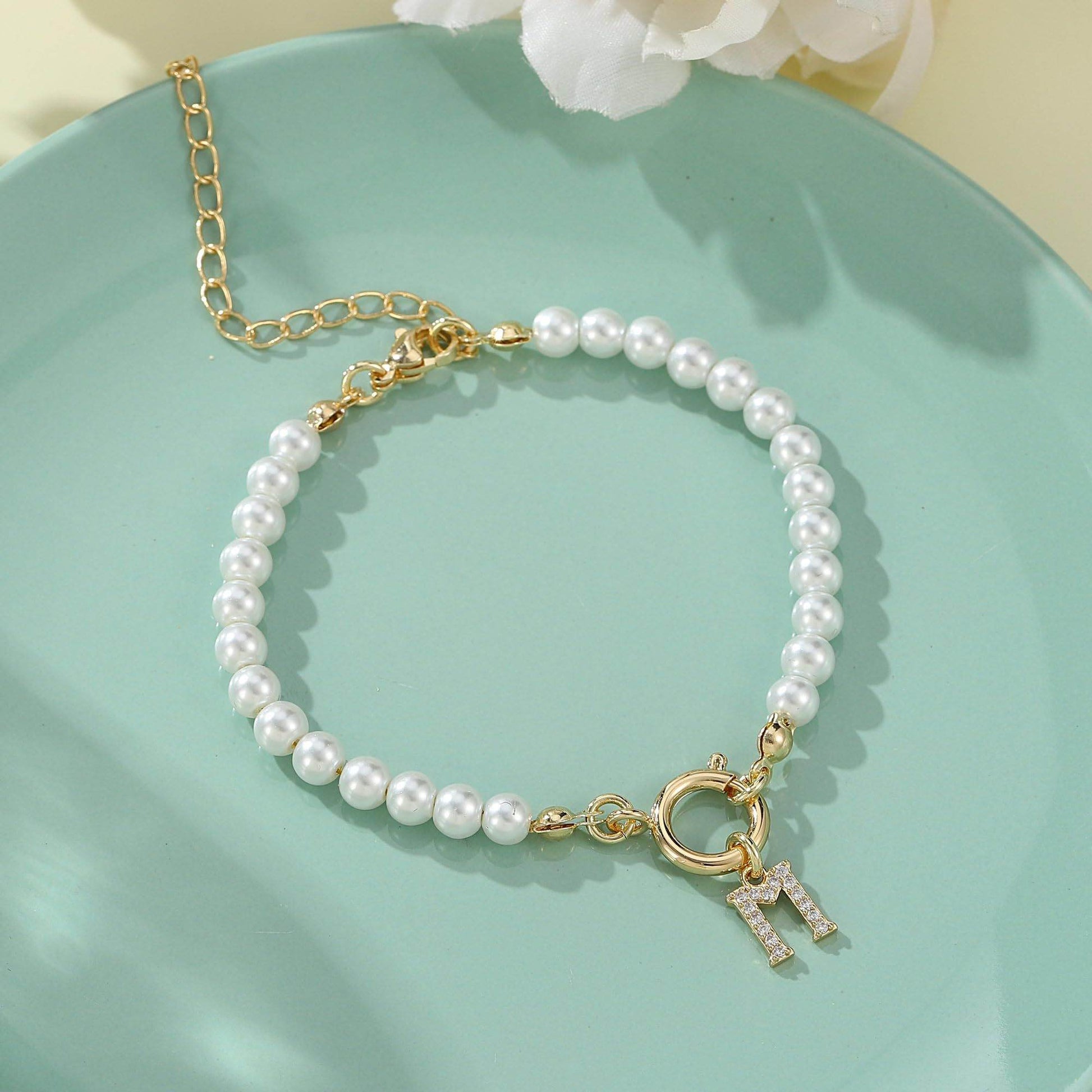 2024 New Fashion Toggle Clasp Initial Bracelet Women A-Z Letter Pendant 6mm Pearl Bracelet For Women Jewelry Gift