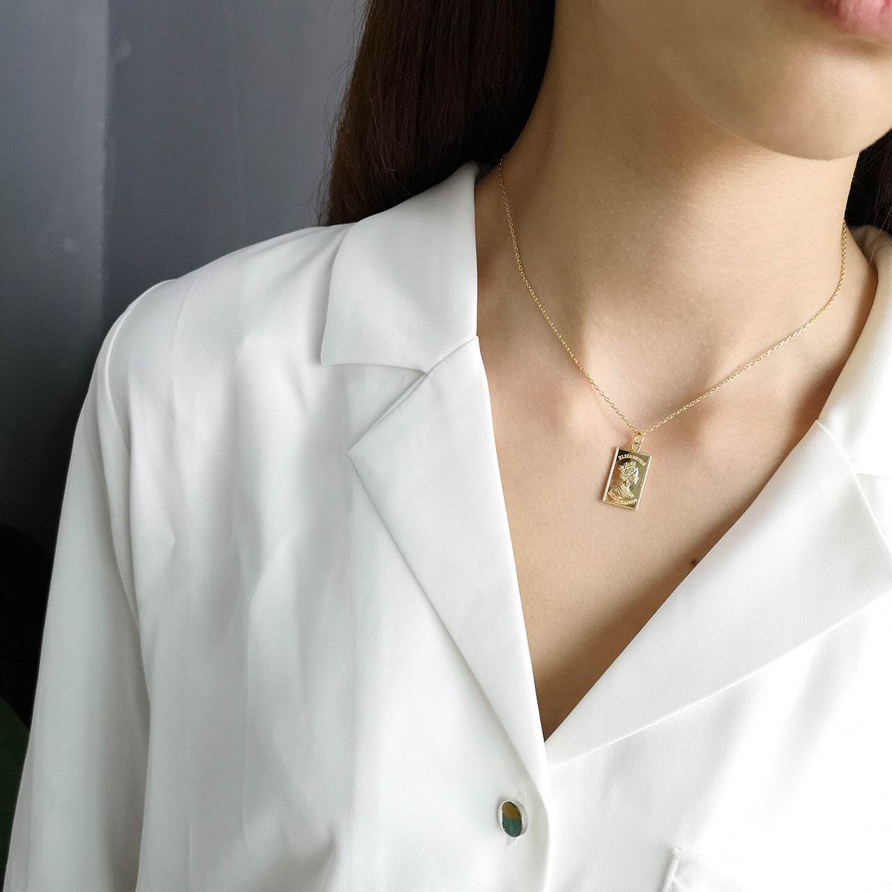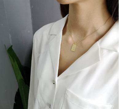 925 Sterling Silver Gold Square Pendant Necklace