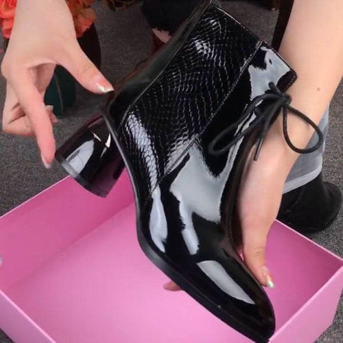 Chunky Heel Pointed Toe Mid Heel Elegant Martin Boots Patent Leather Women