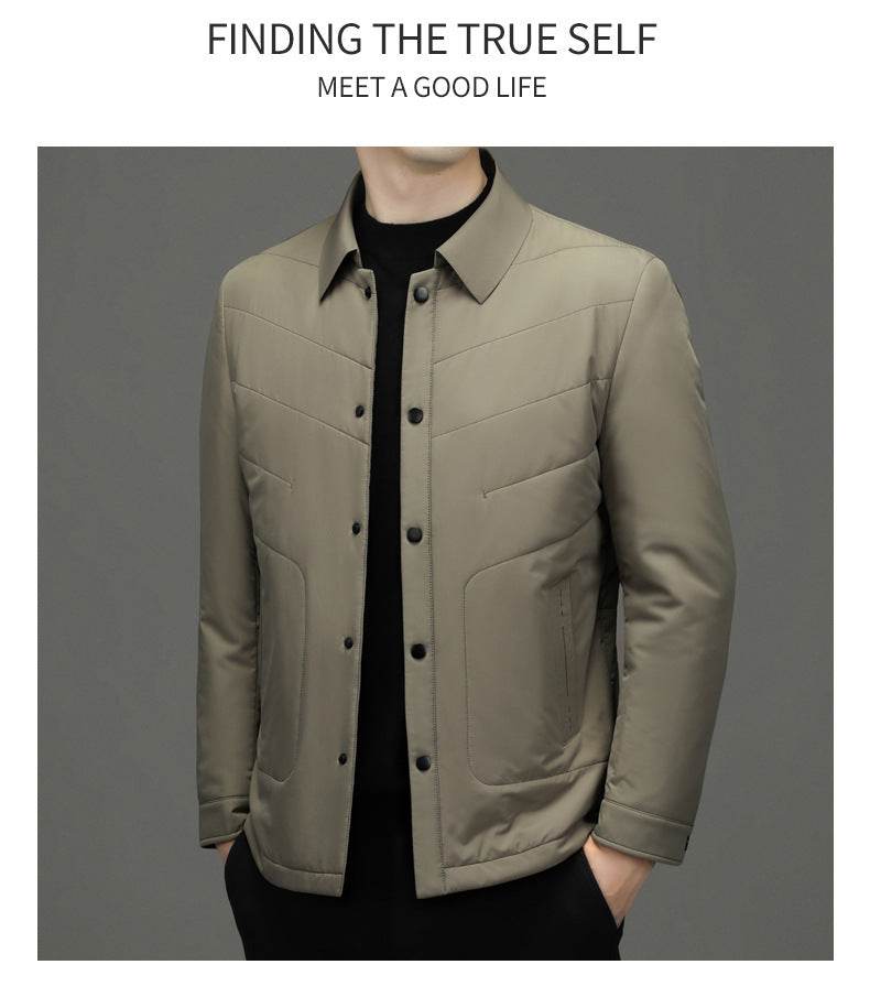 Fall Winter Men Jacket Lapel Fashion Business Lightweight Silk Cotton-padded Coat