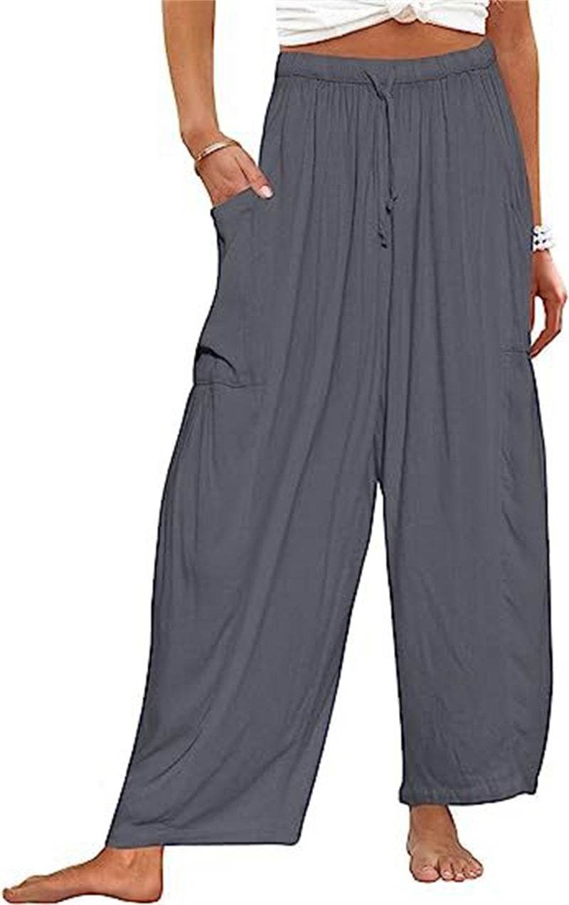 Fashion Wide Leg Pants Summer Loose Elastic High Waist Pleated Trousers Solid Color Womens Clothing