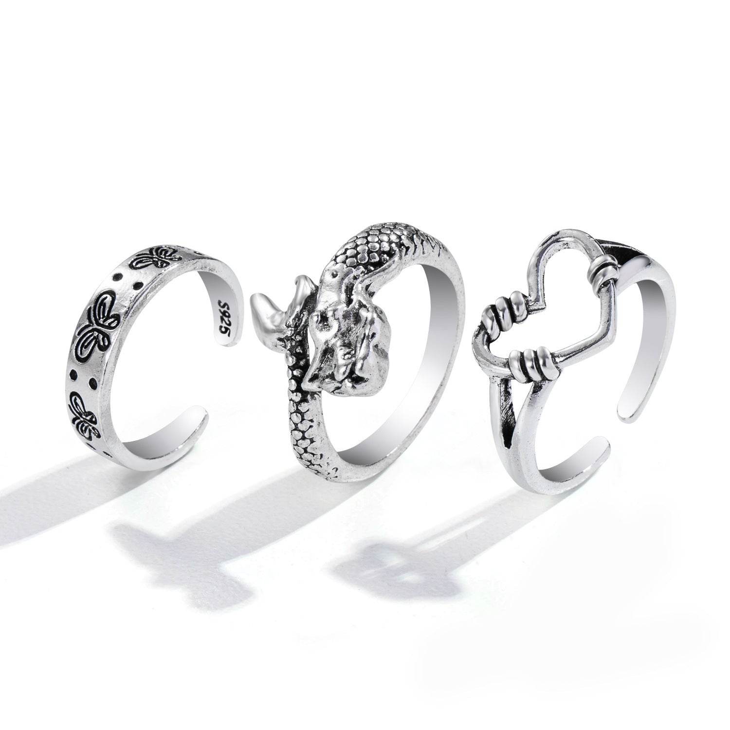 Hot Selling Creative Personality Butterfly 2-Piece Set Ins Same Punk Style Couple Ring