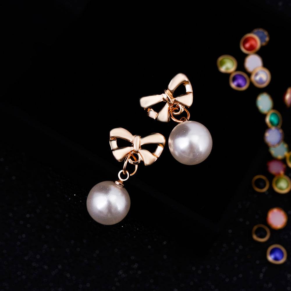 Hypoallergenic Heart-shaped Zircon Earrings Women's Bow Pearl Earrings